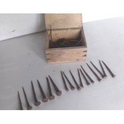 Boite de clous forgés XIXè, environ 45,entre 3 et 7cm, tetes différentes