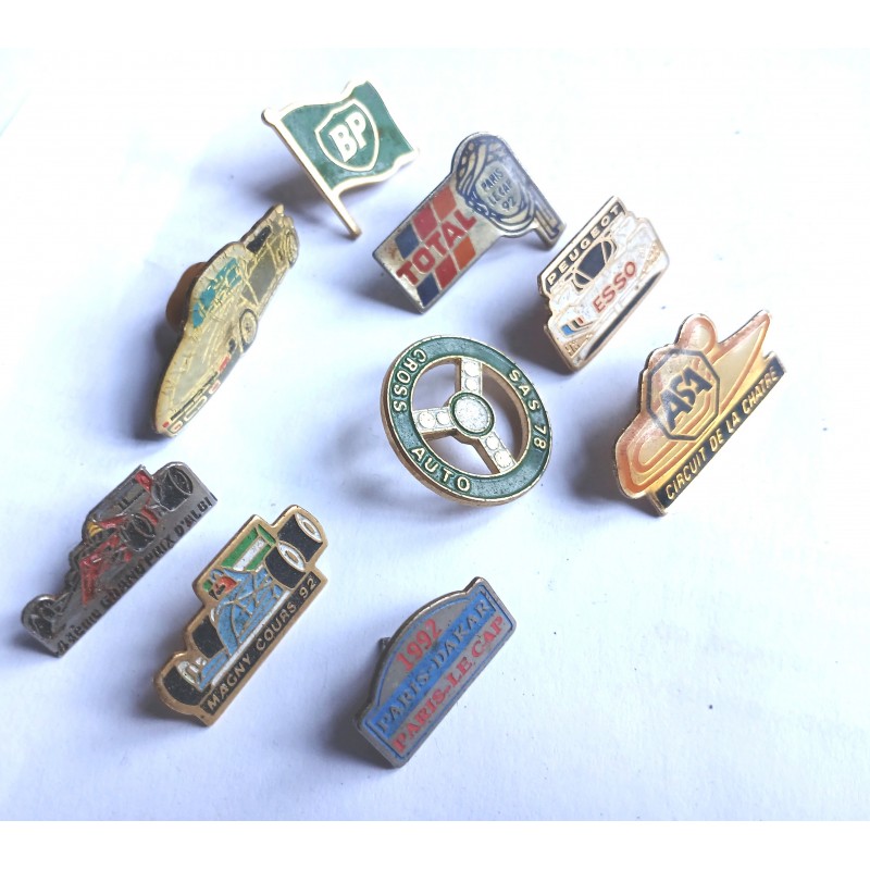 Lot de 9 Pin's voiture Magny cours, Paris Dakat 92, Circuit de la Châtre.
